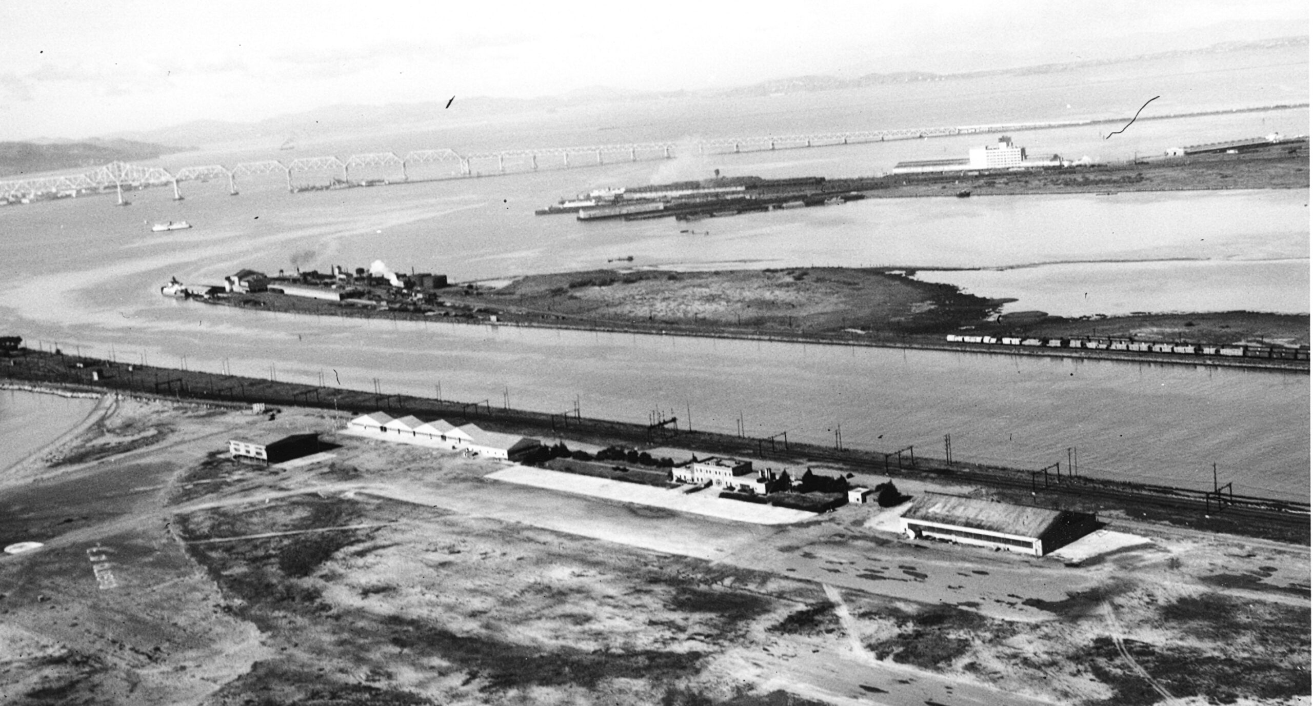 Long before intrepid airmen telescoped time and space in their flights across the Pacific to the Hawaiian Islands, Guam, and Midway, the Navy Department had considered Alameda as a desirable location. On August 10, 1913, the California Legislature provided for the transfer to Alameda of all State-owned tidelands within three miles of the city’s outer boundaries, with the stipulation that the property be improved by the City to the extent of “200,000”(1) within the next five years.